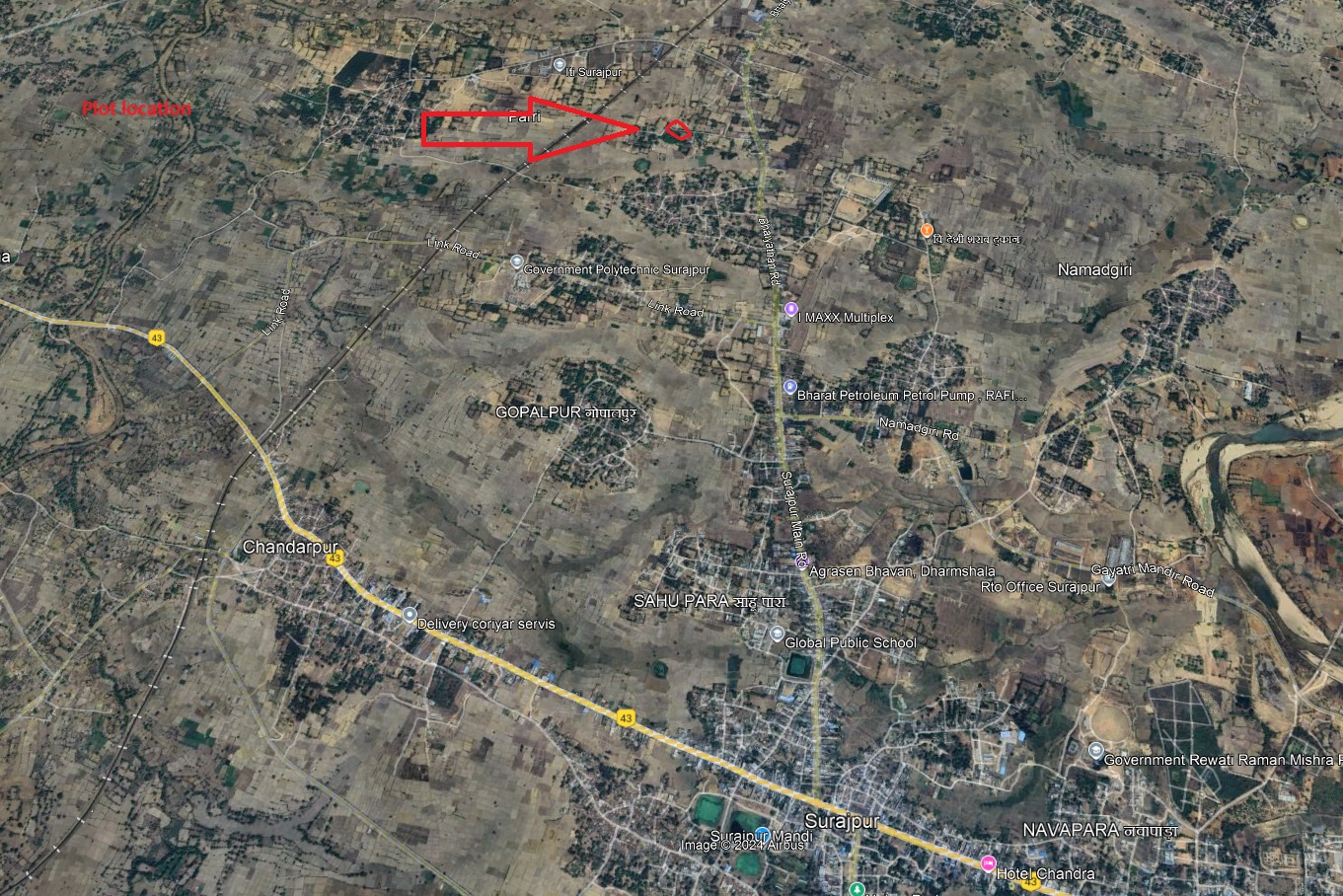 General Land at parri, 400meter away from bhaiyathan surajpur road. 3.8km from bhaiyatha chouk surajpur